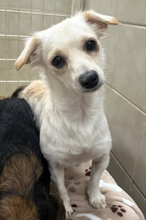 She’s a gentle, timid girl with soft, sensitive eyes that tell her whole story. What she needs now is patience, kindness, and a quiet home where she can finally exhale. A confident canine friend would be wonderful for her–someone to show her that people can be safe, that hands can be gentle, and that love doesn’t have to be scary.