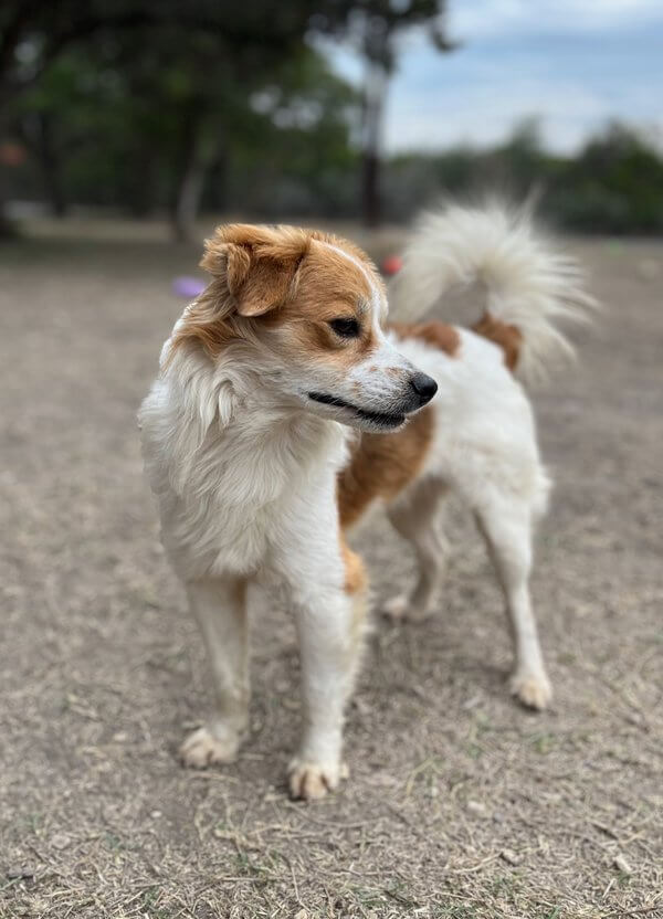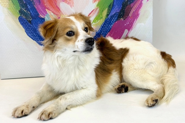 This handsome 4-year-old terrier mix, with his beautiful red-and-white coat, was one of the 48 dogs rescued from a difficult hoarding situation. Despite everything he’s been through, Nutmeg’s heart is full of quiet sweetness.